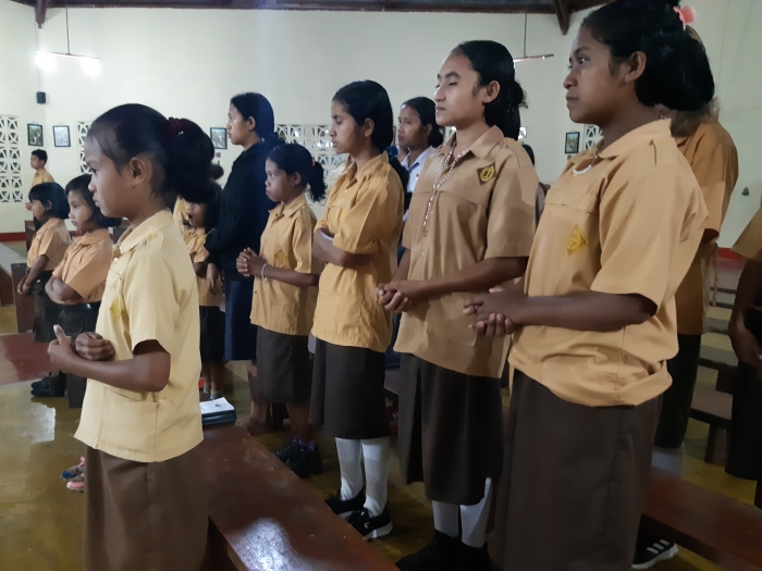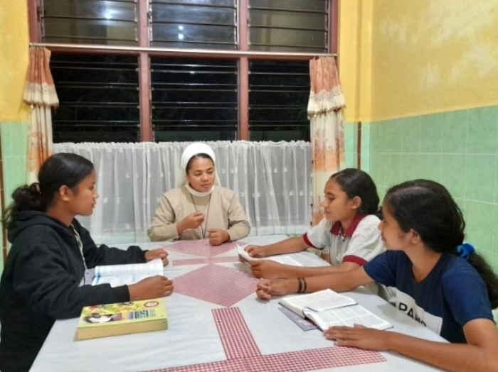 Doa bersama para suster merupakan bagian dari pembinaan rohani agar anak-anak memiliki keteguhan iman akan Allah yang mereka imani.