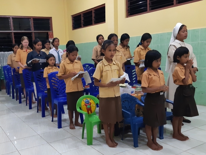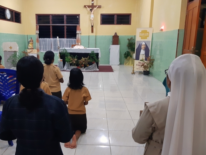 Doa bersama para suster merupakan bagian dari pembinaan rohani agar anak-anak memiliki keteguhan iman akan Allah yang mereka imani.